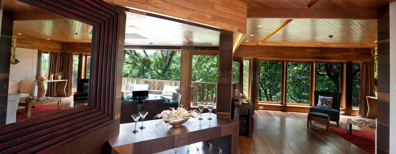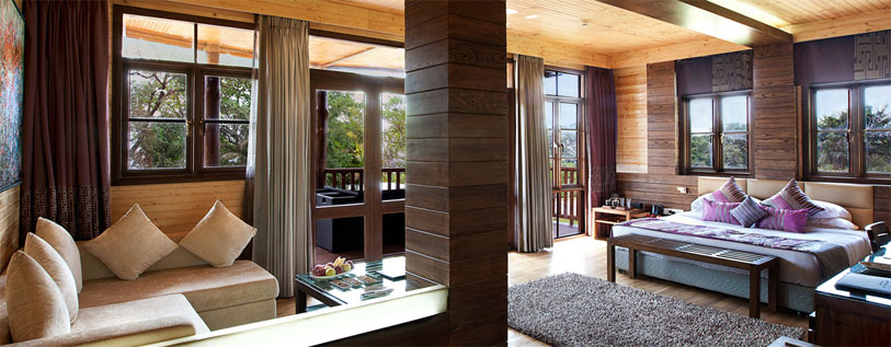 Designed aesthetically out of timber and glass, the Hermitage caters to a desire to be cocooned in a private world. The impressively furnished interiors with rustic and wooden décor brings alive the living spaces. Located on a hilltop, it pampers your experience with a delightful 180° view of the Hill City.